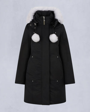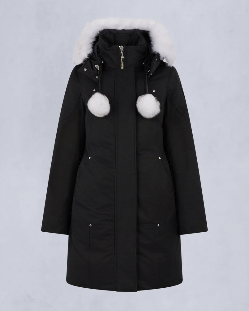 - Abnehmbare Kapuze mit abnehmbarem Shearling-Besatz und Pompons