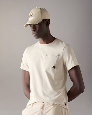 Crafted from soft Pima cotton jersey, the T-shirt features a tonal patch pocket finished with a Moose Knuckles logo and a ribbed crewneck collar: lightweight, breathable, and refined for everyday wear.
