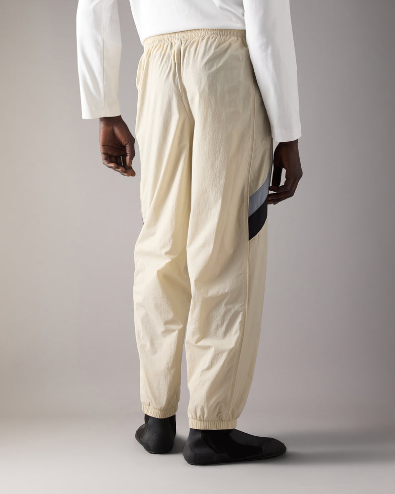 The material is water-repellent, wind-resistant, breathable, and offers UPF 50+ protection. Contrast piping defines the tapered silhouette, finished with zigzag stitching and a logo patch.