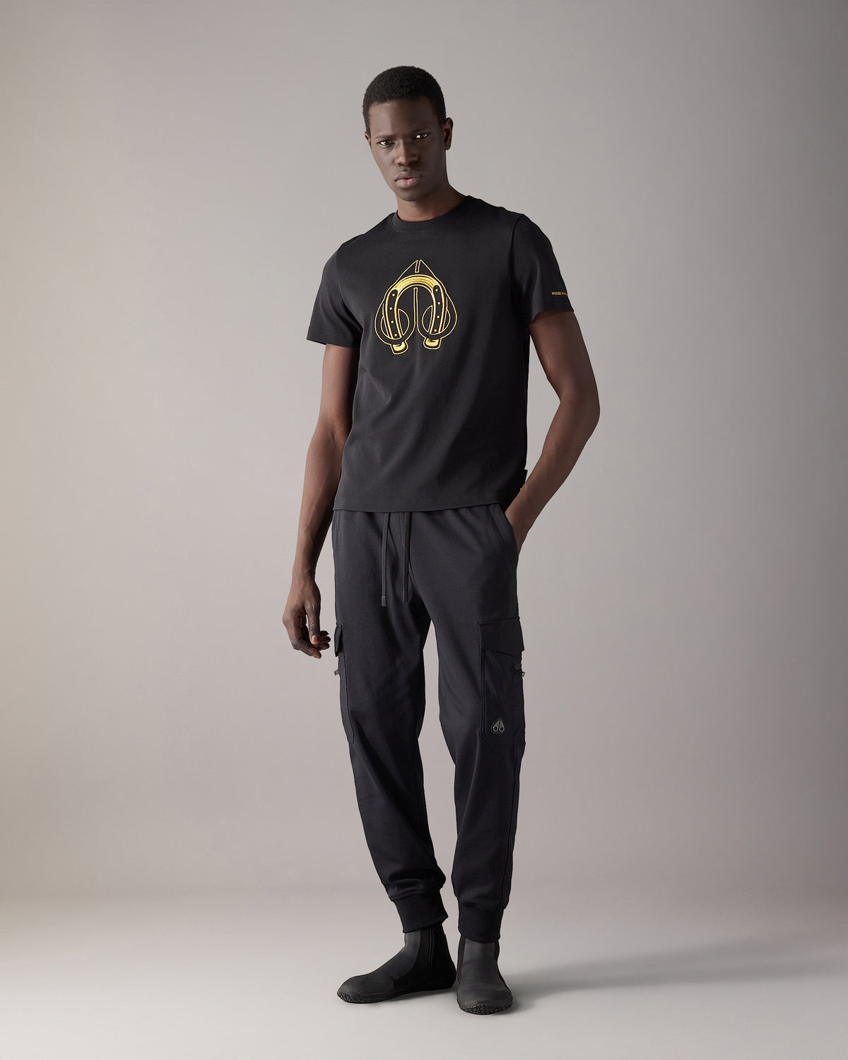 - Lunar New Year Black and Gold Horseshoe Embroidered Logo, Moose Knuckles Logo on Sleeve