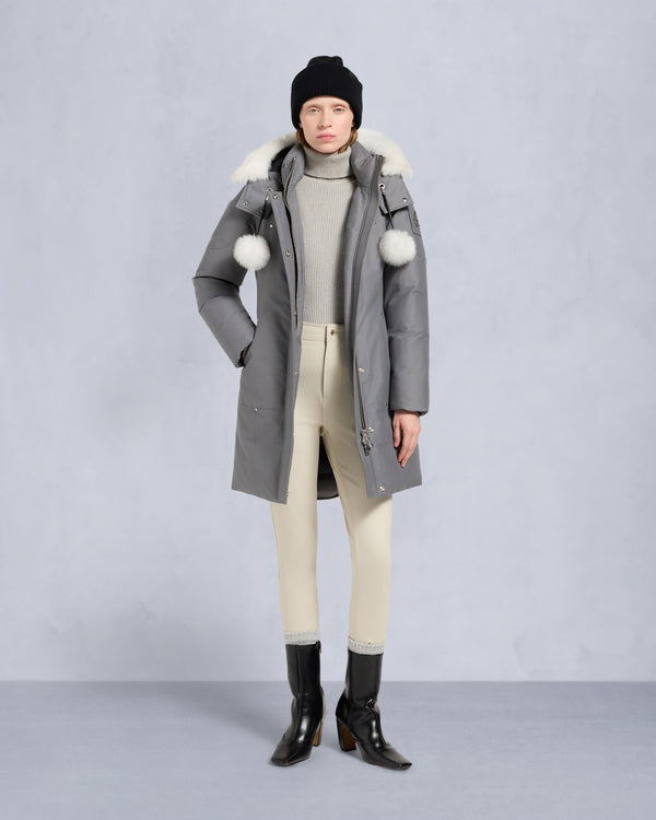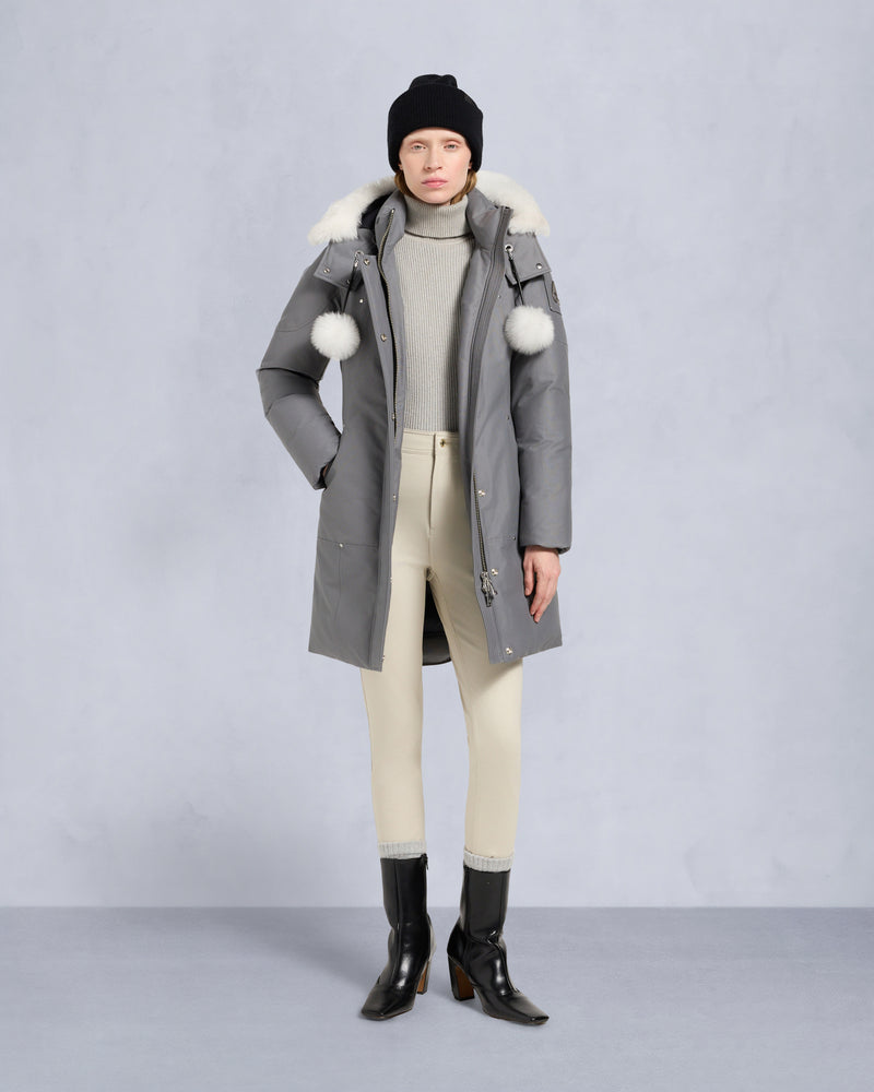 - Removable Hood with Removable Shearling Trim And Pom Poms