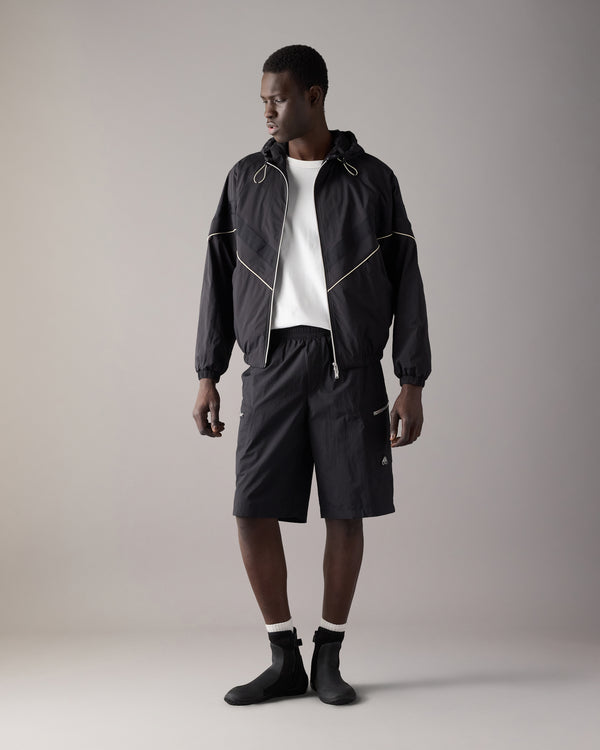 Fabriqué de notre nouveau tissu froncé ultra-léger, il est déperlant, coupe-vent, respirant et offre une protection SPF 50+. Un design à chevrons en blocs de couleur, des détails à cordons de serrage et une fermeture éclair bidirectionnelle offrent une protection ajustable.
