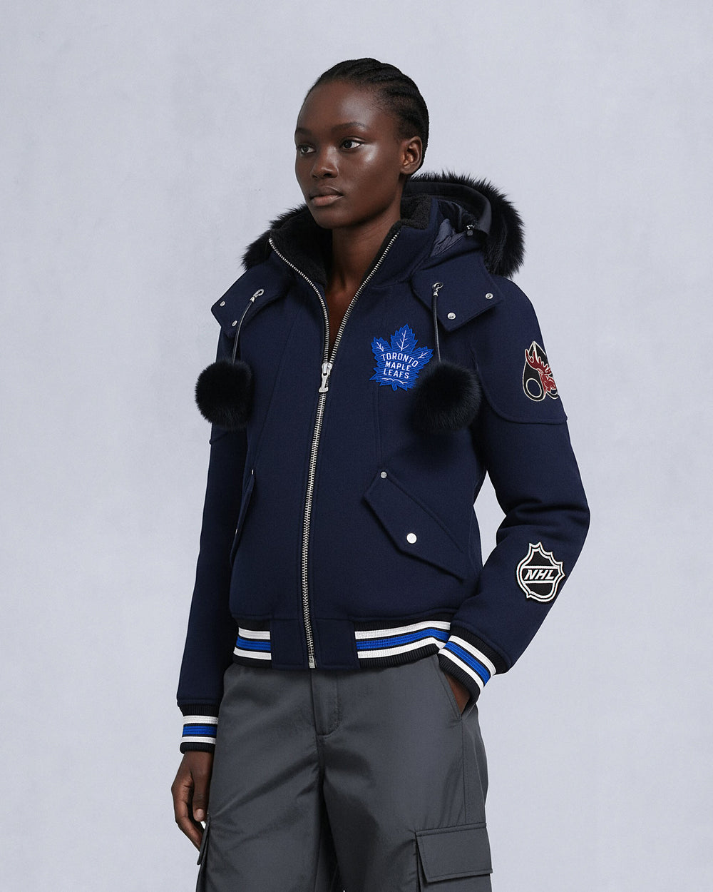 NHL X MOOSE KNUCKLES MAPLE LEAFS BOMBER JACKET