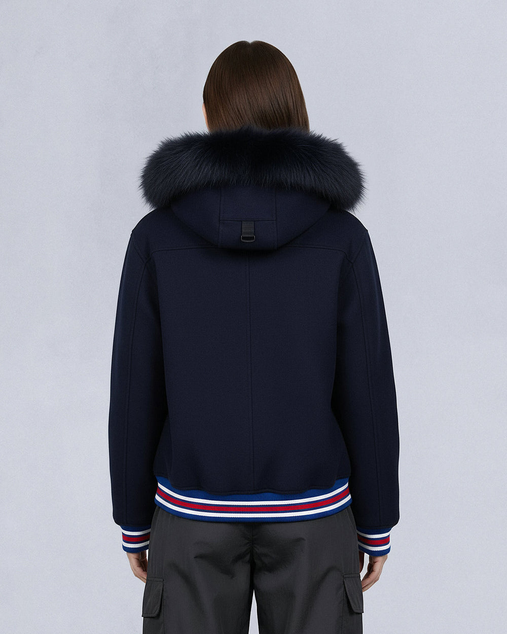 - Removable Hood with Removable Shearling Trim And Pom Poms