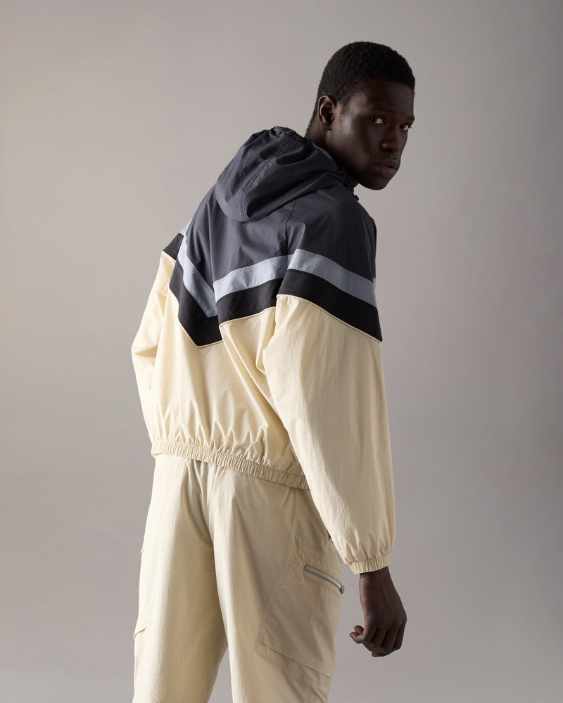 Crafted in our new ultralight Crinkle fabric, it’s water-repellent, wind-resistant, breathable, and UPF 50+ protective. A colorblocked chevron design, drawcord detailing, and two-way zip deliver adaptable coverage.