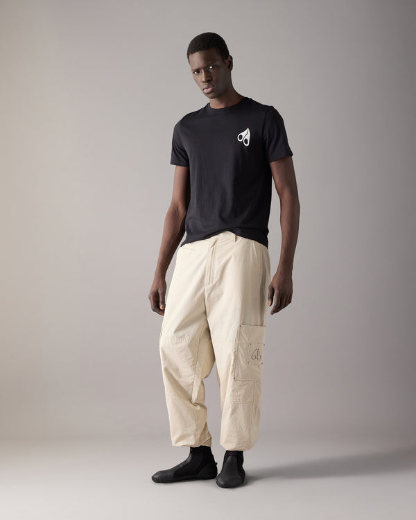 Featuring a liquid stacked logo graphic on the back and a logo icon at the chest, this short-sleeve tee delivers breathable comfort and signature Moose Knuckles attitude.